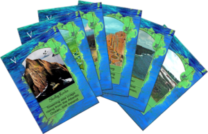 Set against blue seas surrounding the Isle of Ireland, these cards introduce the island’s varied terrain. While not comprehensive, they reflect the diversity of land that shaped Irish settlement, survival, and identity.